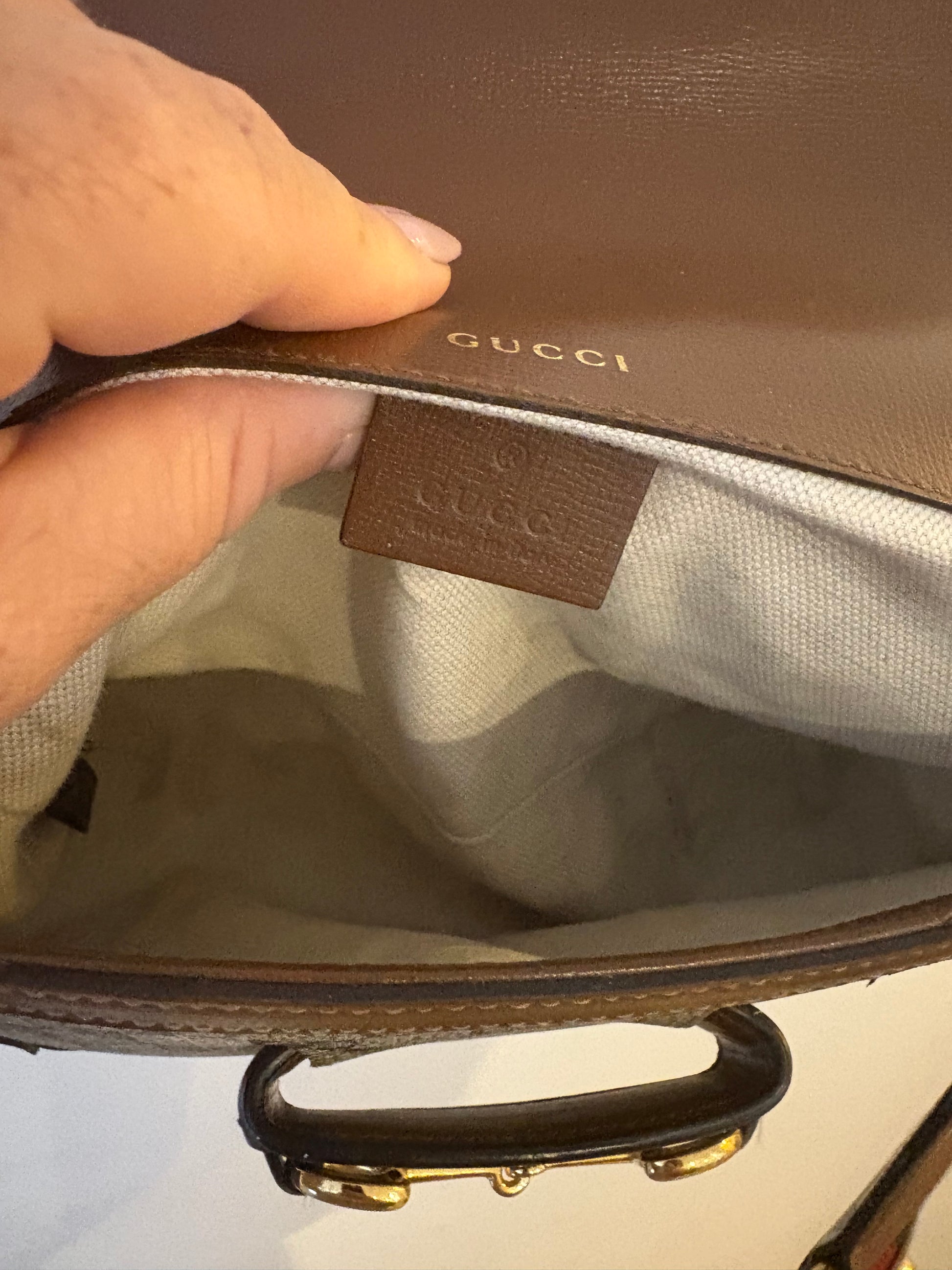 • Signature gold-tone Horsebit hardware