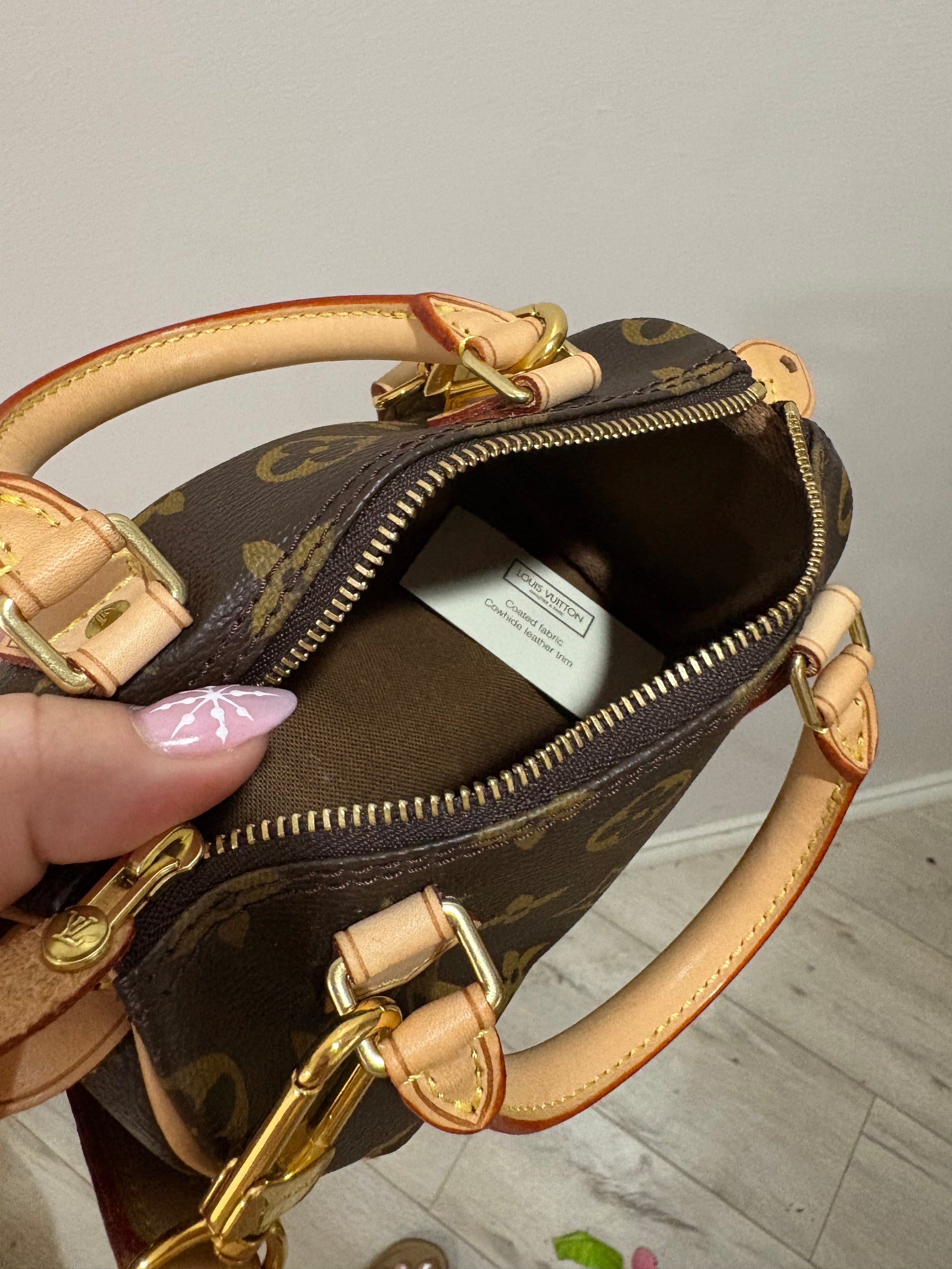 Authentic Louis Vuitton Nano Speedy in classic Monogram canvas.