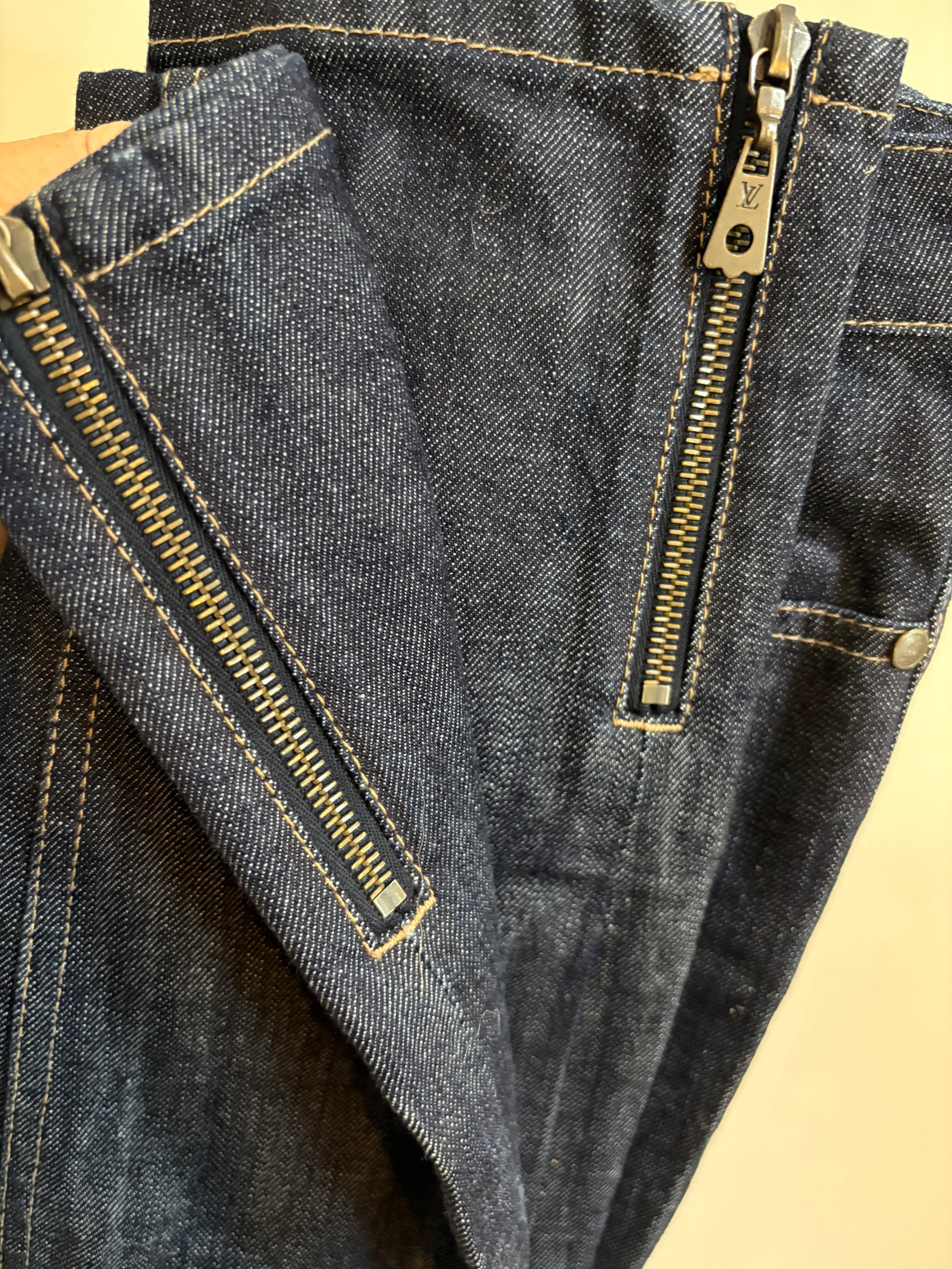 . A sleek, elevated take on classic denim featuring subtle LV hardware details and ankle zip finishes.